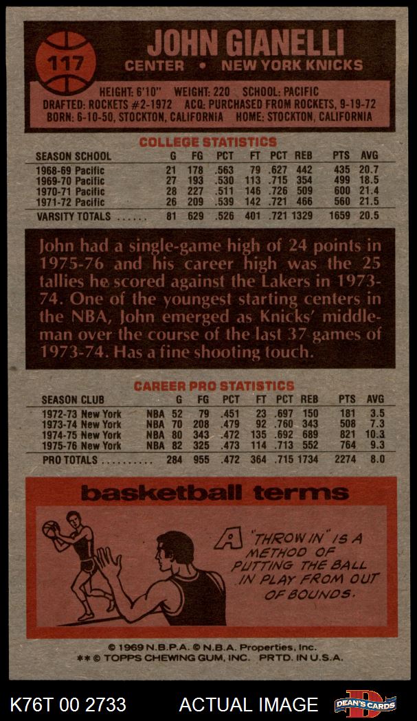 1976 Topps #117 John Gianelli 7.5 - NM+