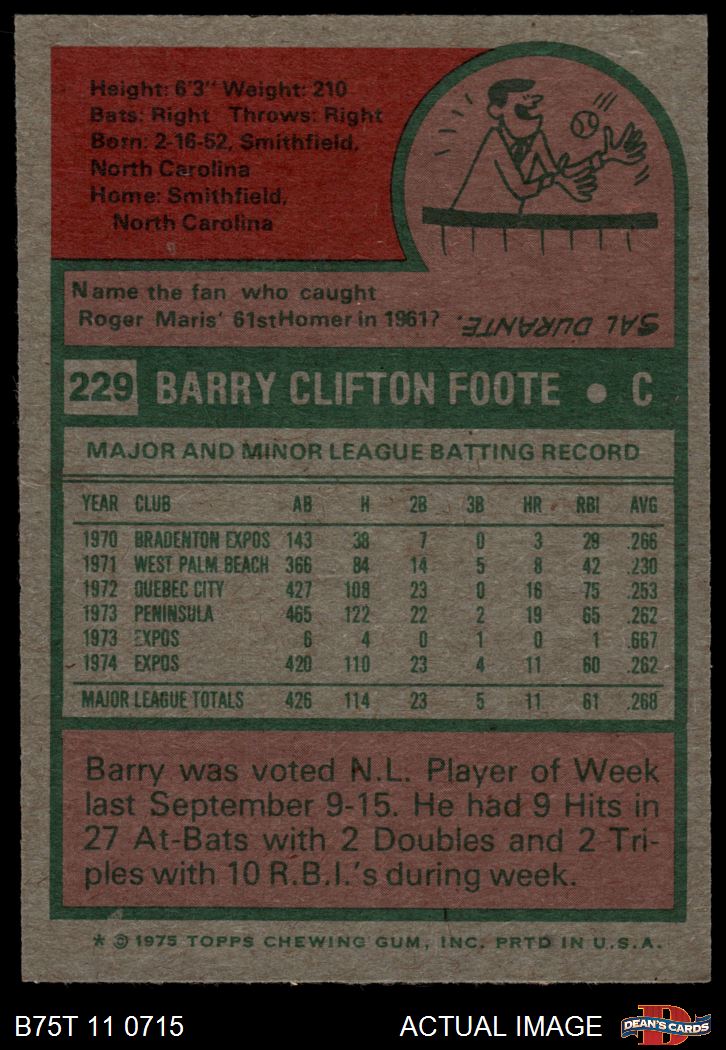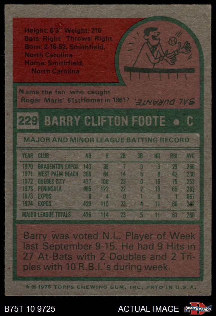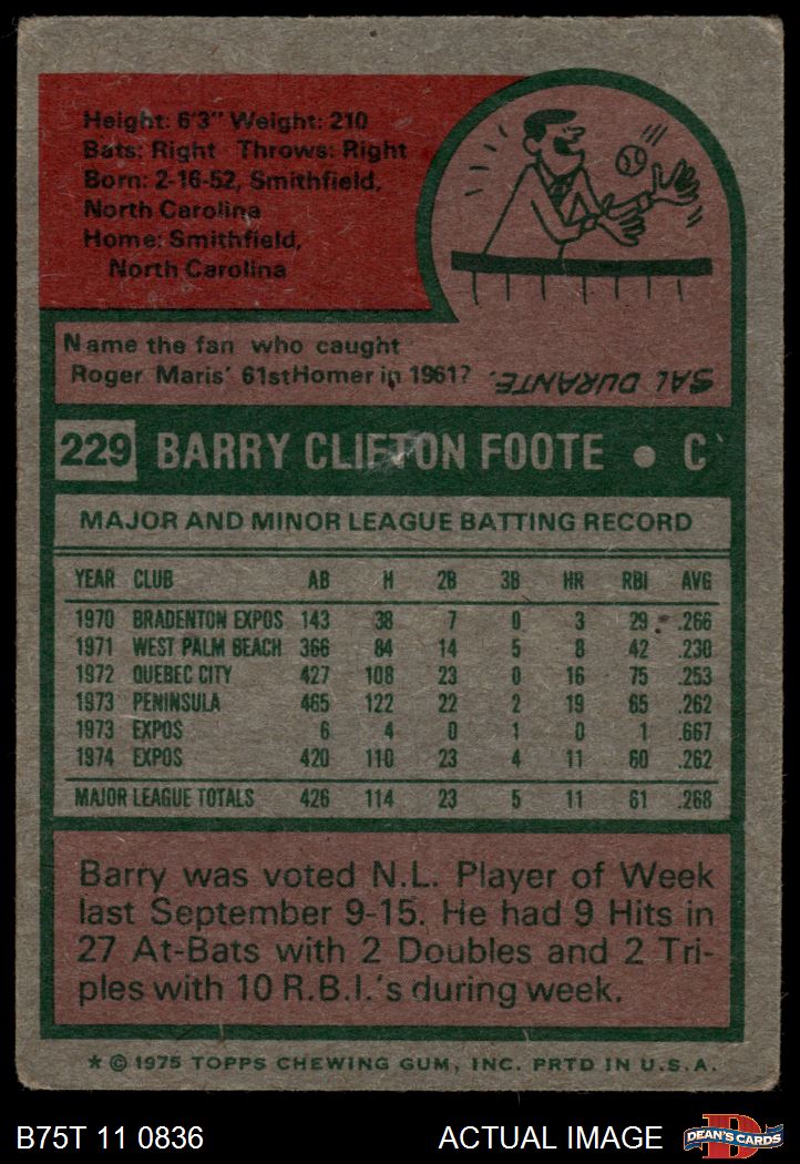 1975 Topps #229 Barry Foote