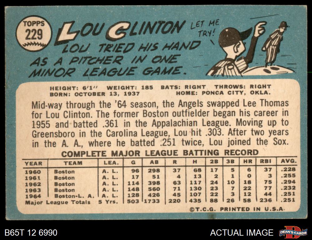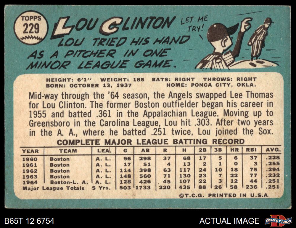 1965 Topps #229 Lou Clinton 2 - GOOD