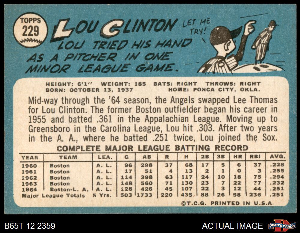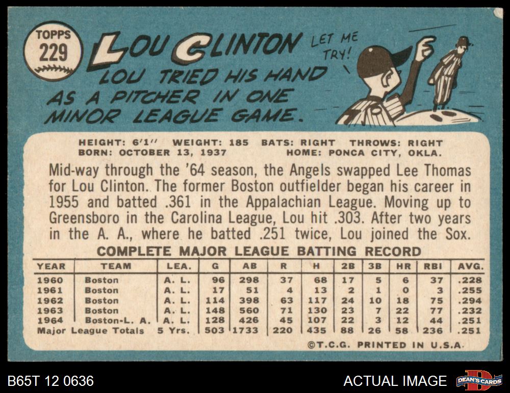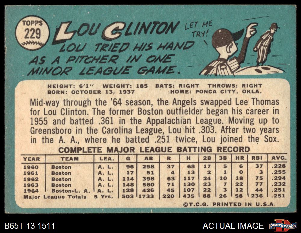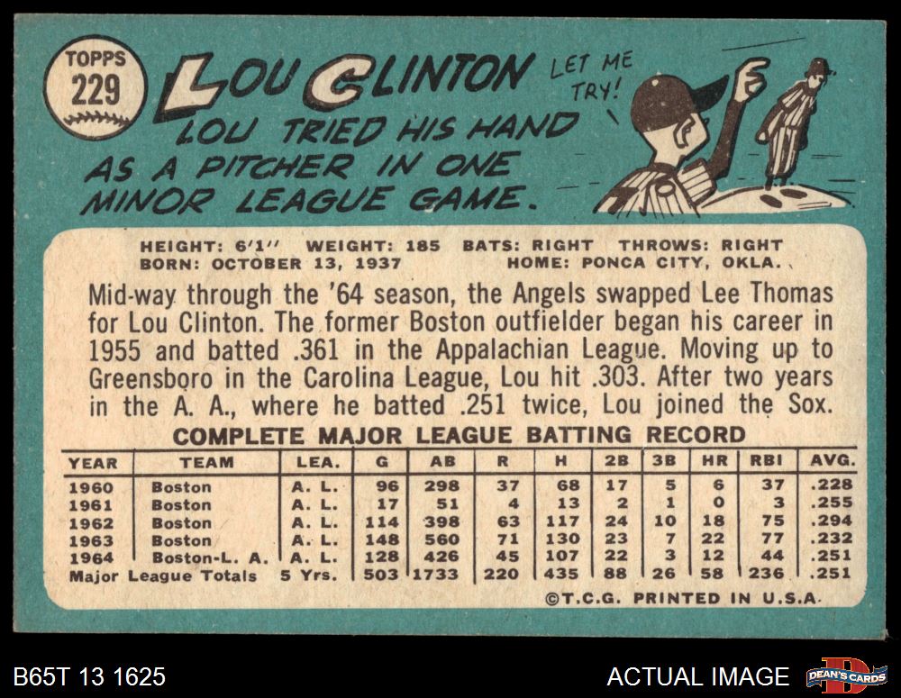 1965 Topps #229 Lou Clinton 4 - VG/EX