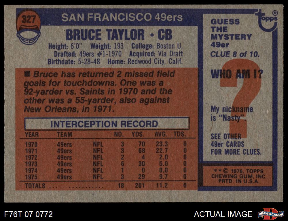 1976 Topps #327 Bruce Taylor 3 - VG