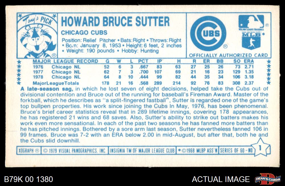 1979 Kellogg's #1 Bruce Sutter 8 - NM/MT