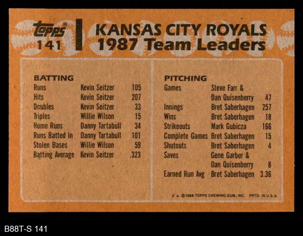 1988 Topps #141 - George Brett / Bret Saberhagen Royals Leaders 8 - NM/MT
