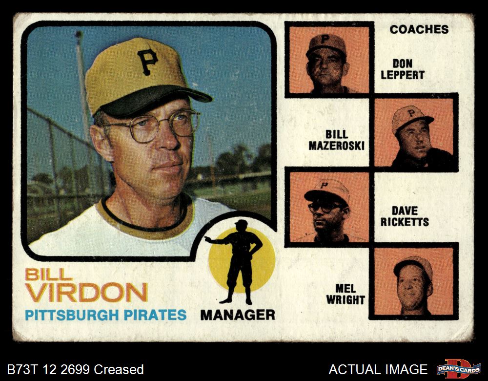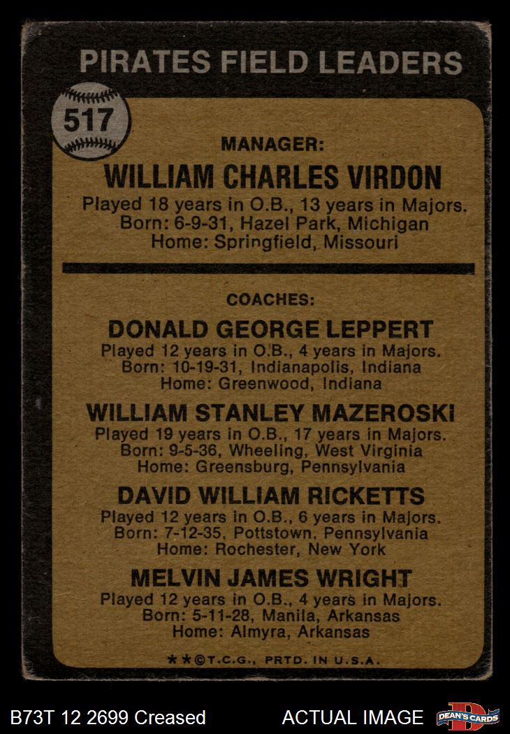 1973 Topps #517 xEAR - Bill Virdon / Don Leppert / Bill Mazeroski / Dave Ricketts / Mel Wright Pirates Leaders 1 - POOR