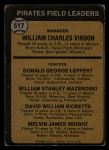 1973 Topps #517 xEAR  -  Bill Virdon / Don Leppert / Bill Mazeroski / Dave Ricketts / Mel Wright Pirates Leaders Front Thumbnail