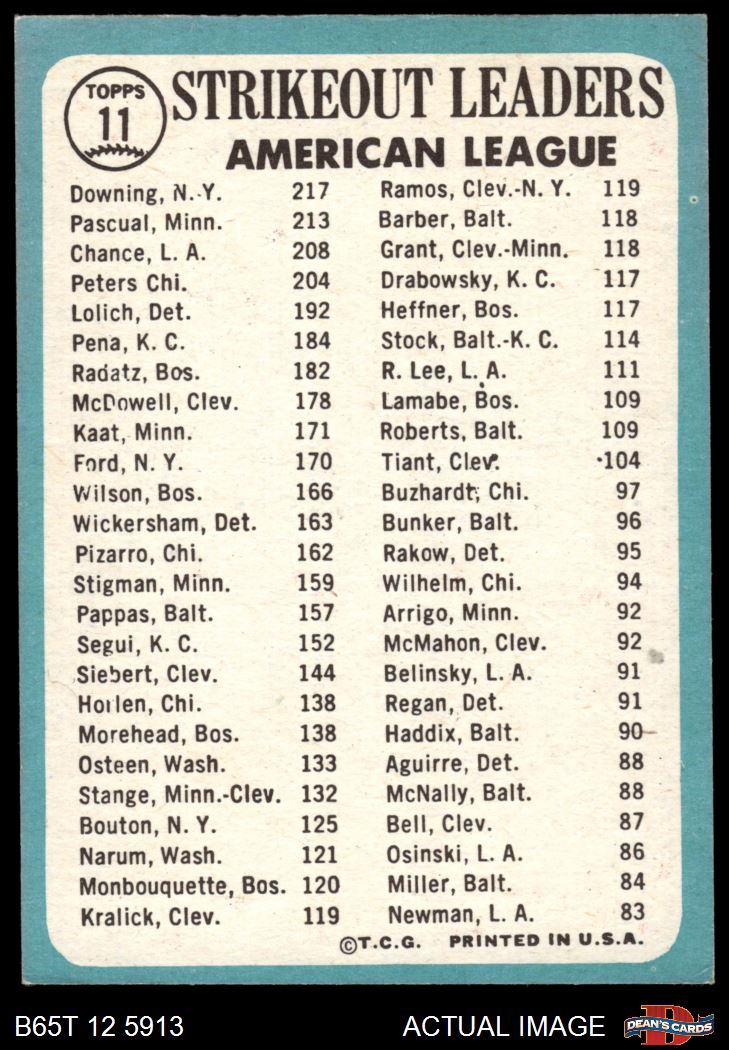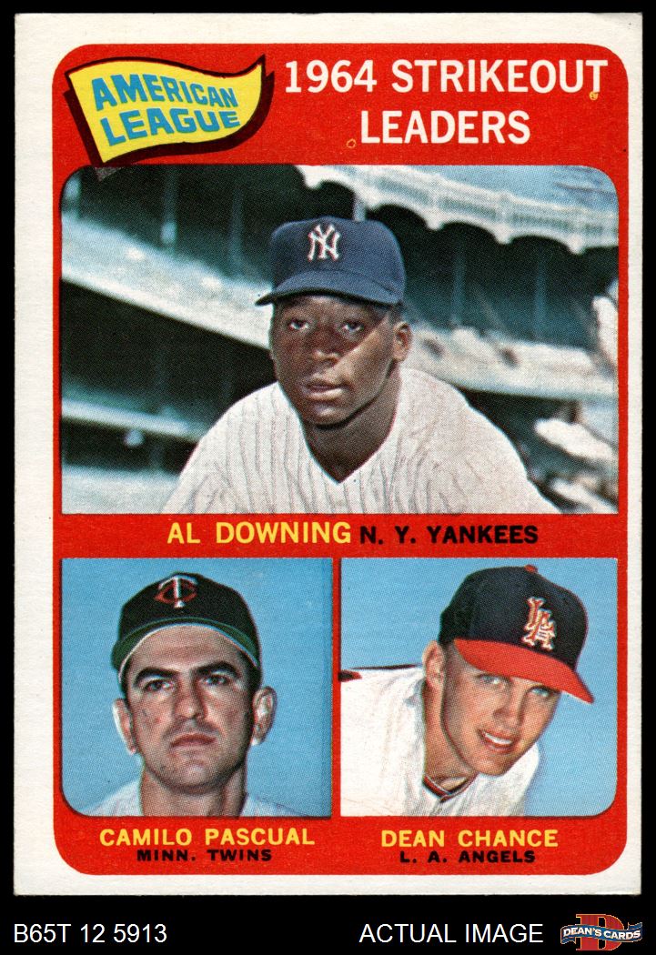 1965 Topps #11 - Al Downing / Camilo Pascual / Dean Chance AL Strikeout Leaders 5 - EX