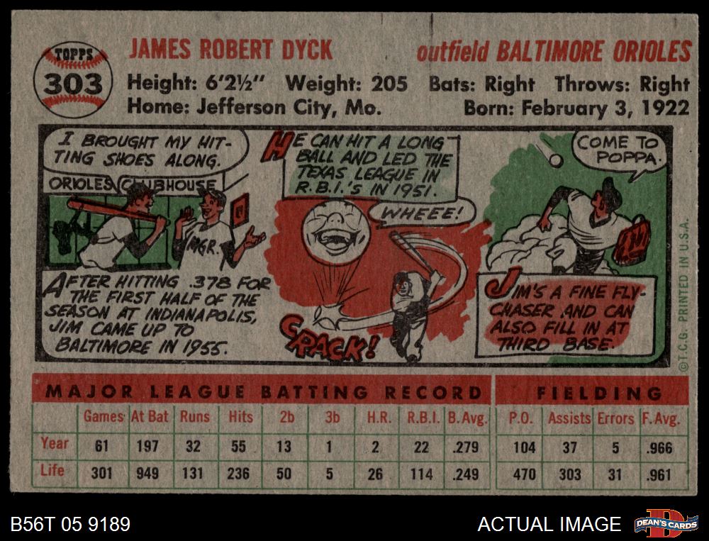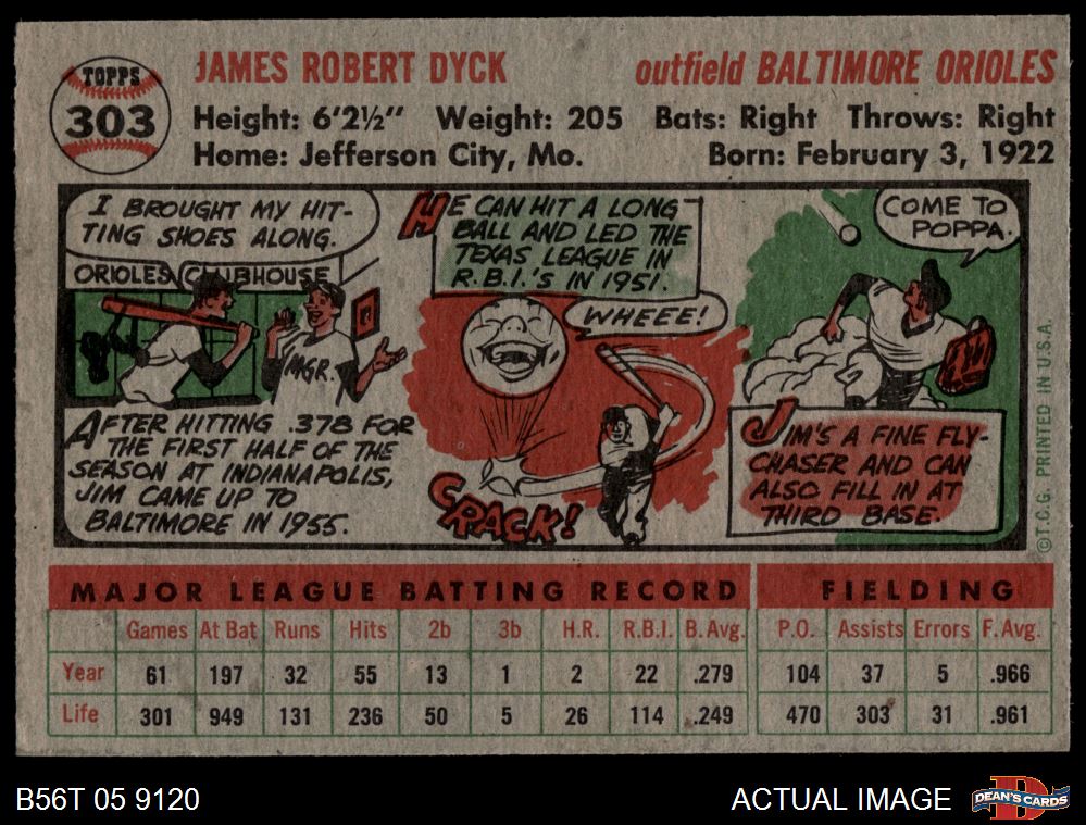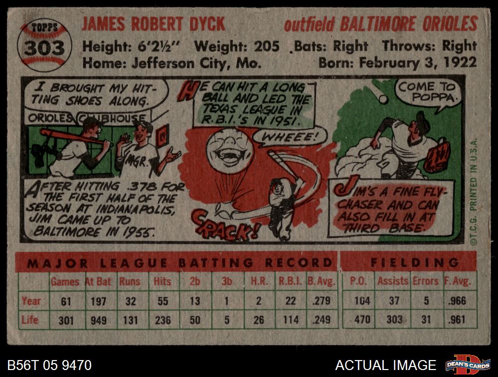1956 Topps #303 Jim Dyck