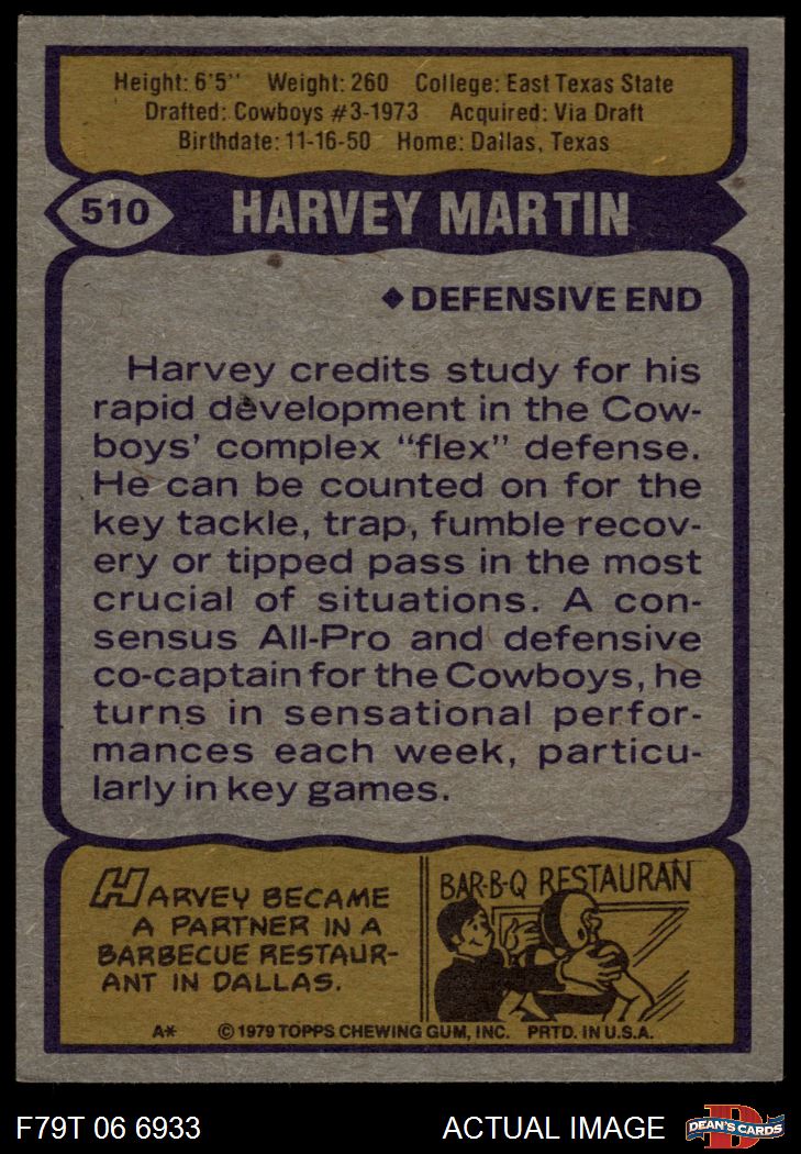 1979 Topps #510 Harvey Martin 5 - EX