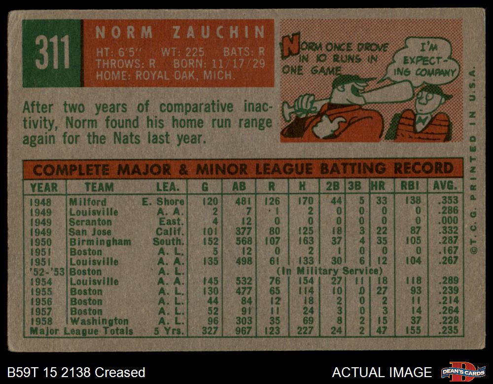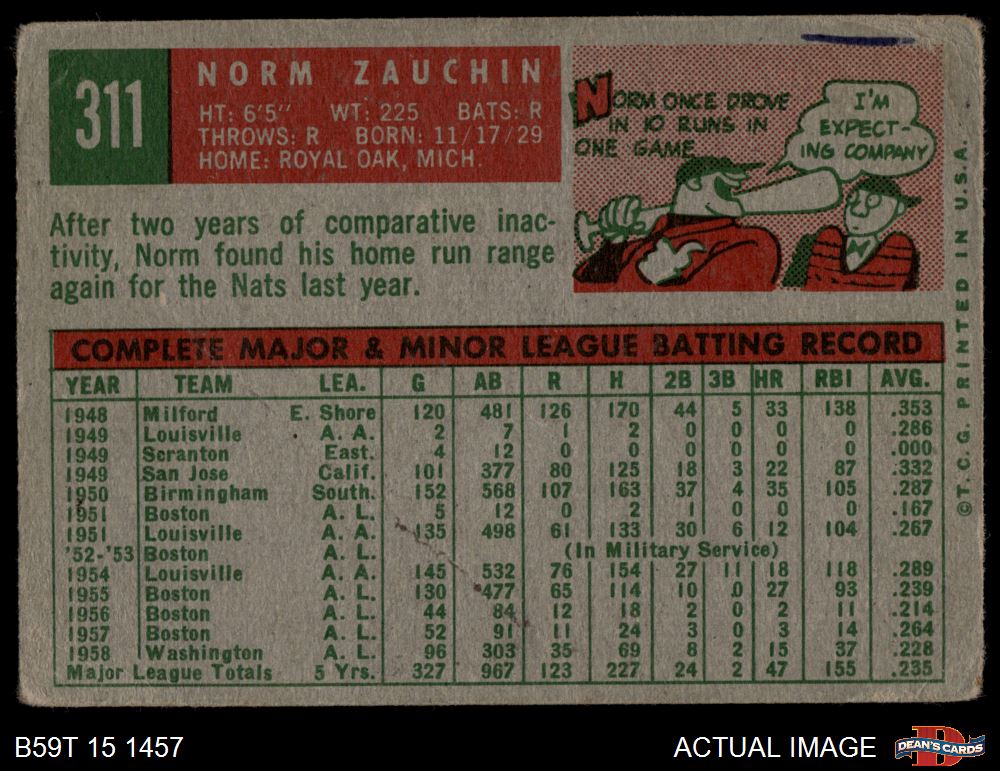 1959 Topps #311 Norm Zauchin