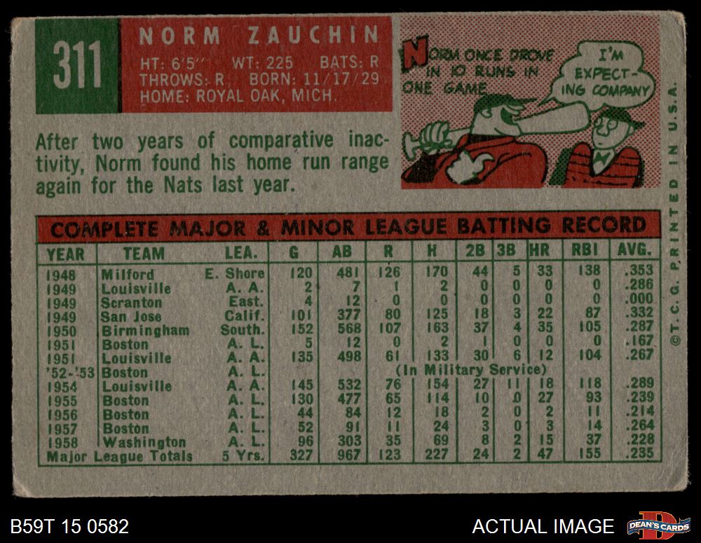 1959 Topps #311 Norm Zauchin Front Thumbnail