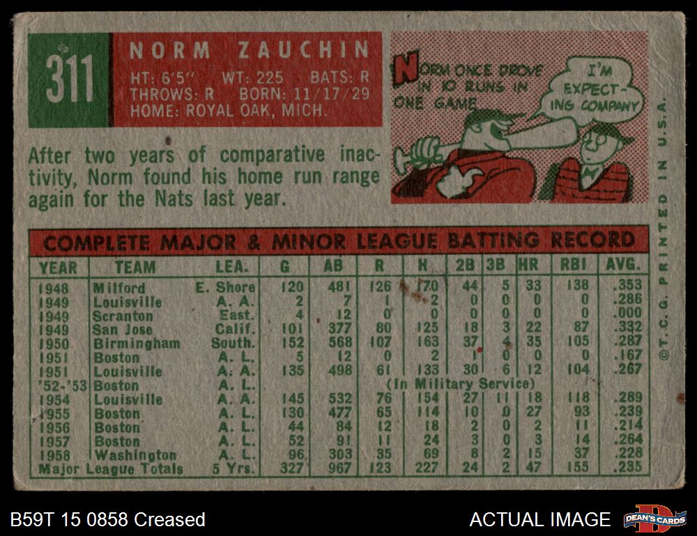 1959 Topps #311 Norm Zauchin 2 - GOOD