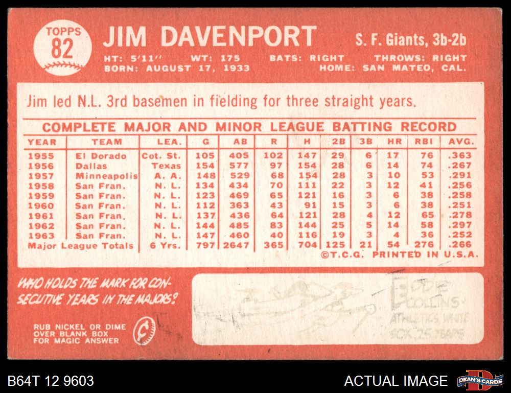 1964 Topps #82 Jim Davenport 3 - VG