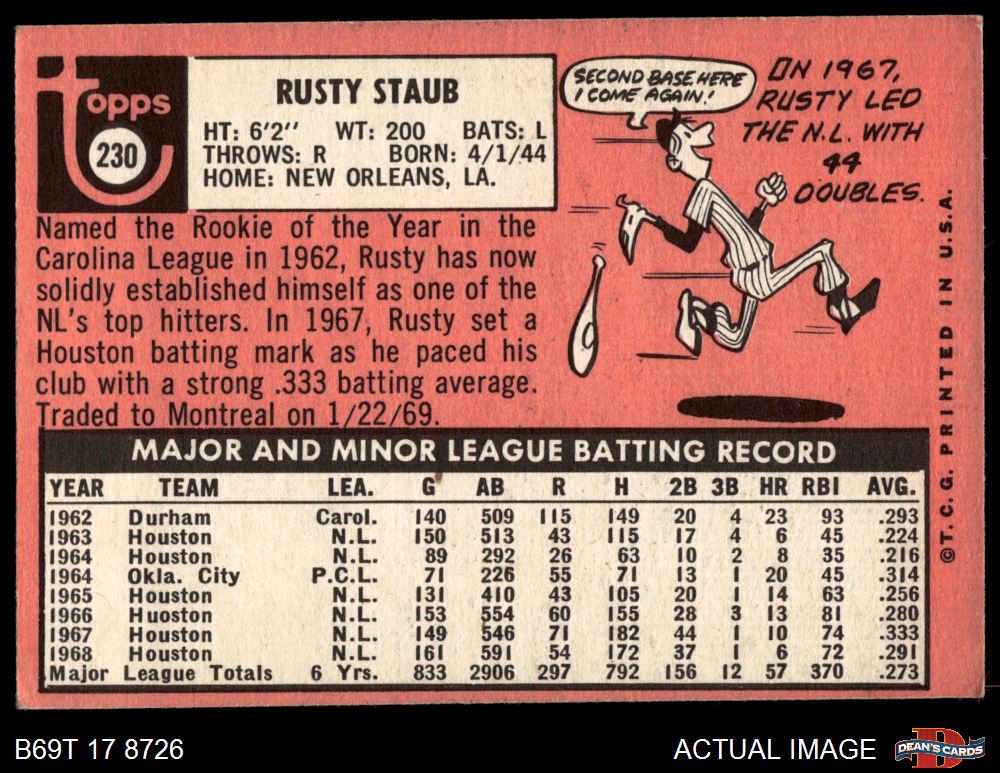 1969 Topps #230 Rusty Staub 3 - VG