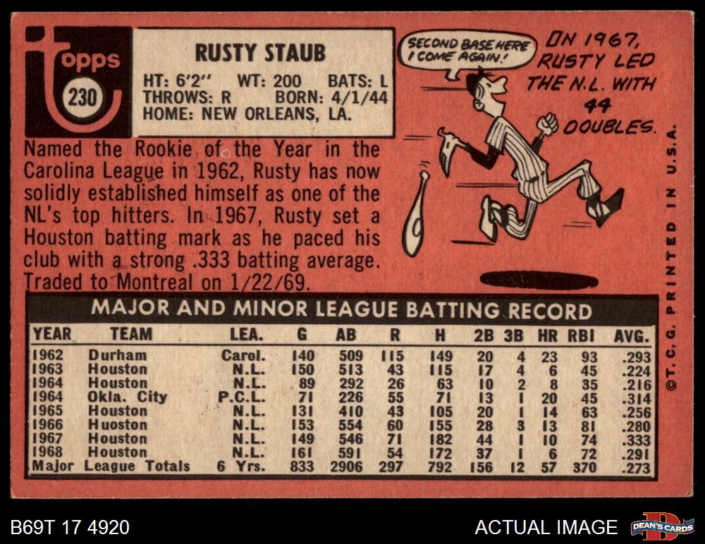 1969 Topps #230 Rusty Staub 4 - VG/EX