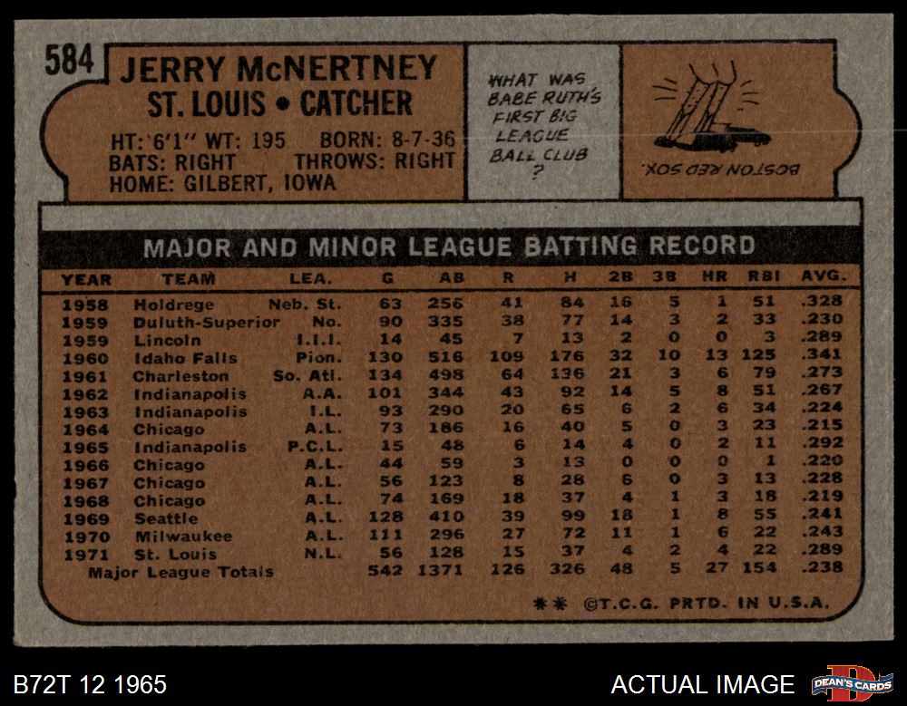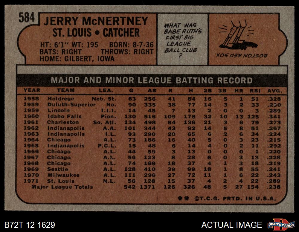 1972 Topps #584 Jerry McNertney 6 - EX/MT