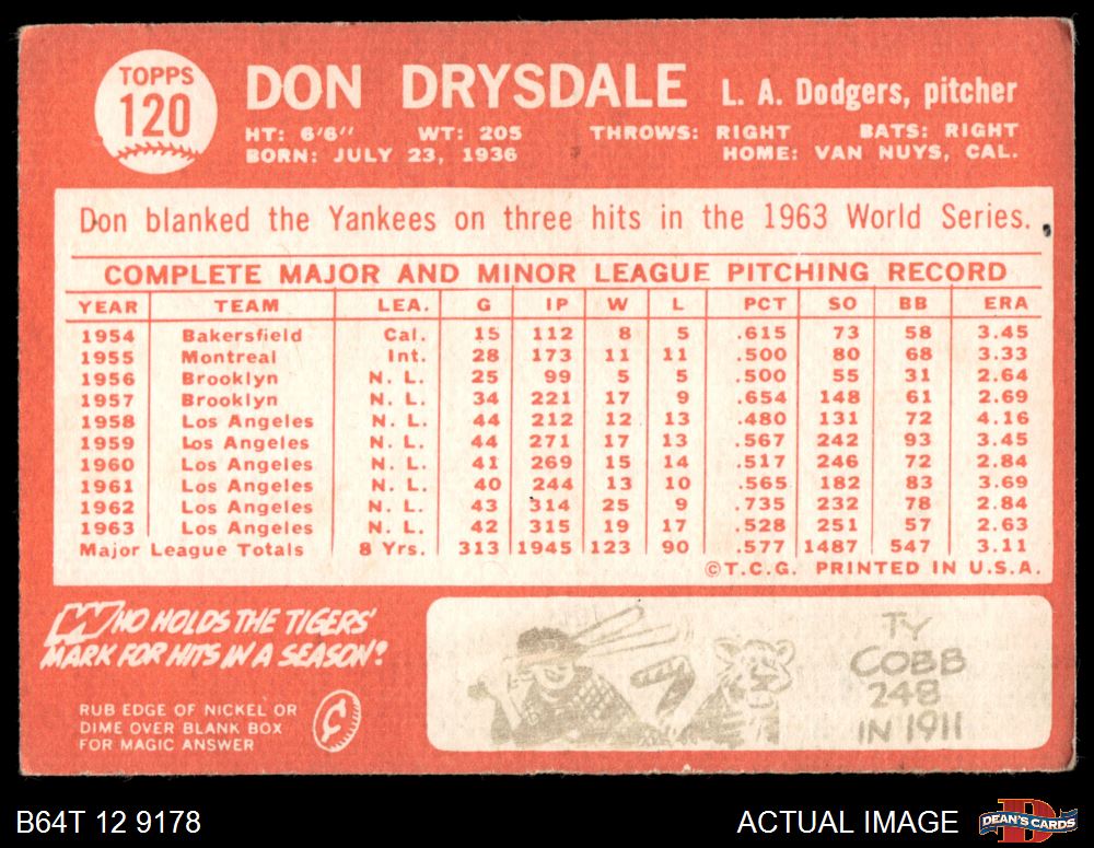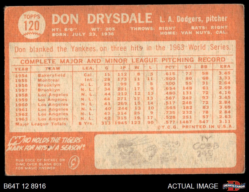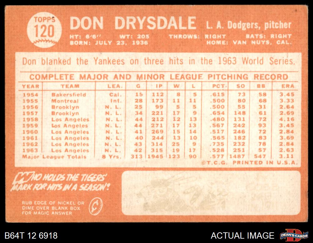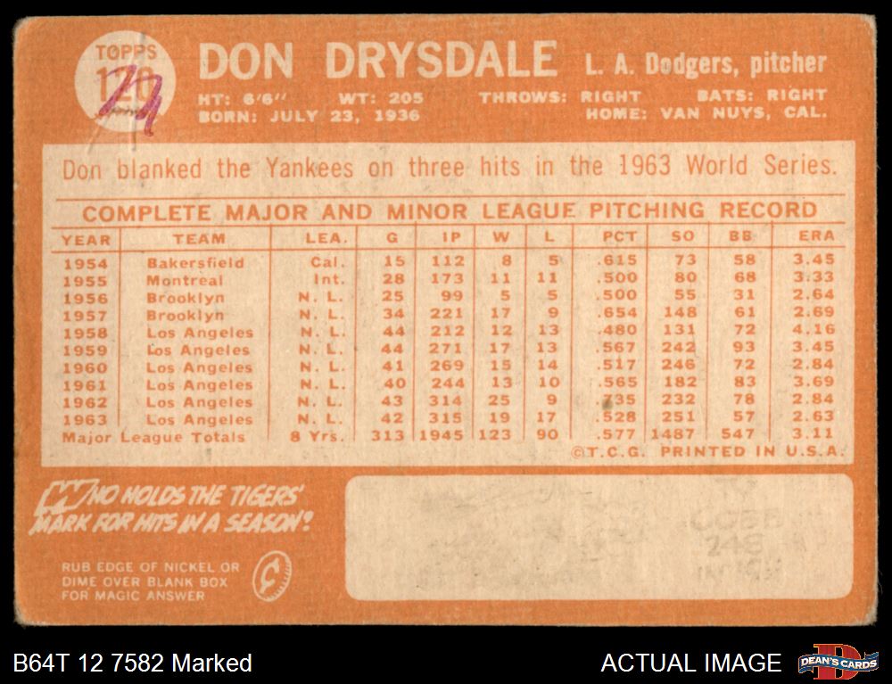 1964 Topps #120 Don Drysdale