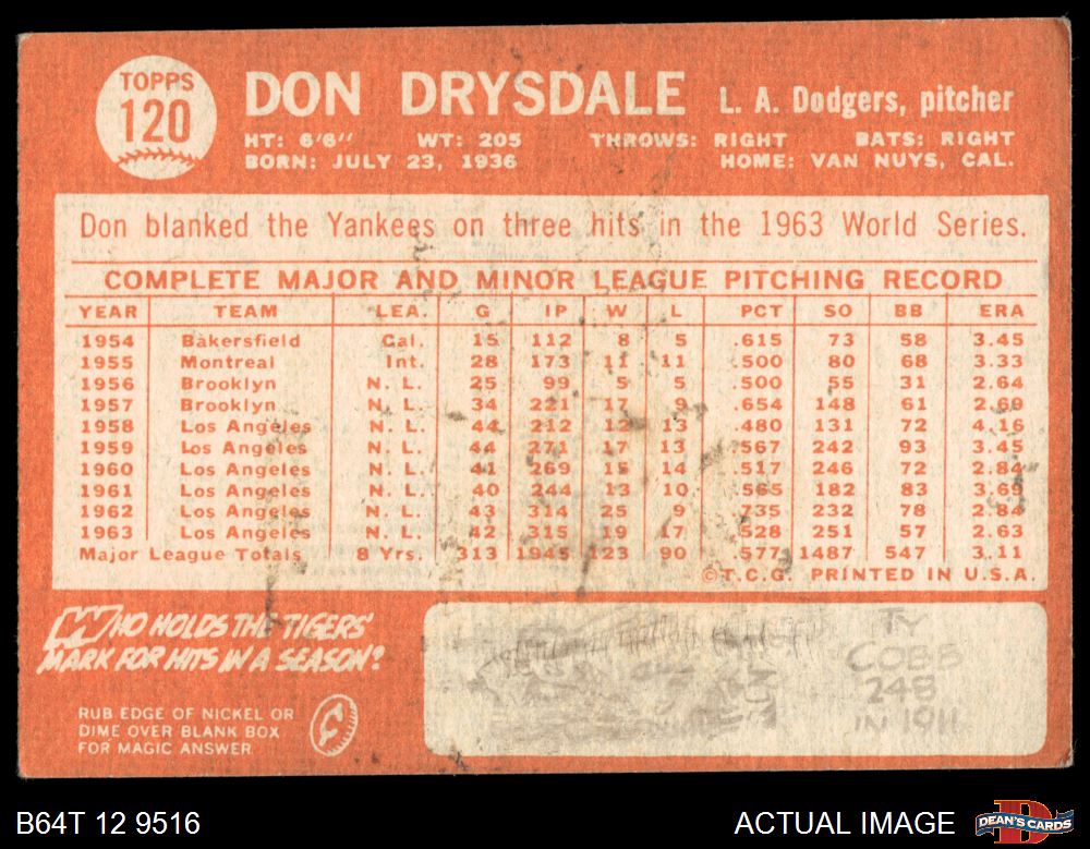1964 Topps #120 Don Drysdale 2 - GOOD