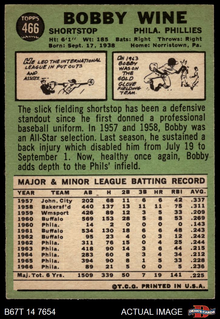 1967 Topps #466 Bobby Wine 4 - VG/EX