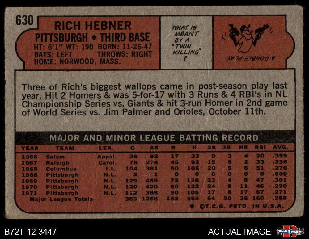 1972 Topps #630 Rich Hebner 1.5 - FAIR