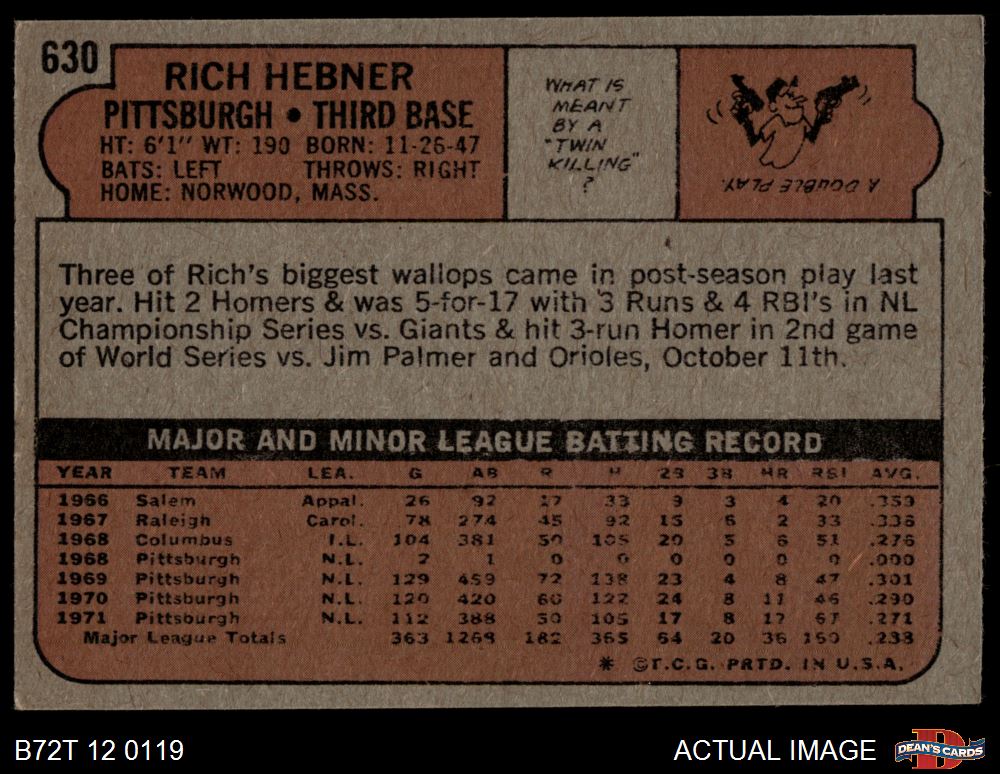 1972 Topps #630 Rich Hebner 4 - VG/EX