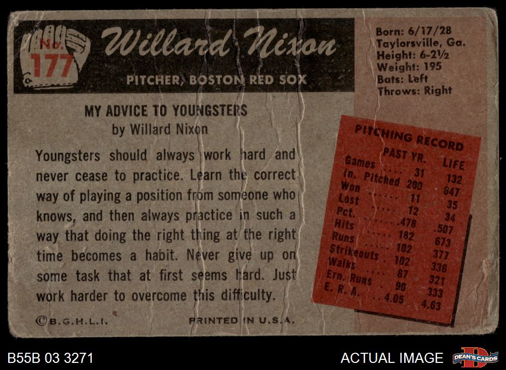1955 Bowman #177 Willard Nixon 1 - POOR