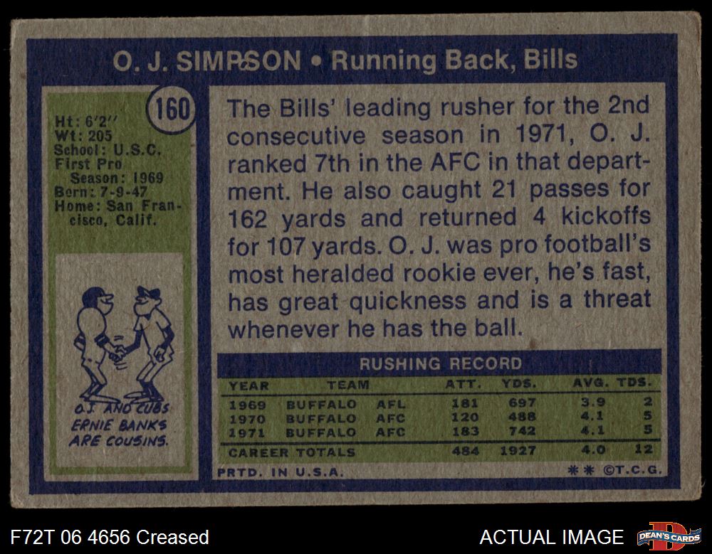 1972 Topps #160 O.J. Simpson 2 - GOOD