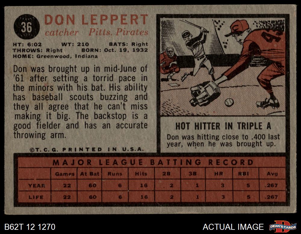 1962 Topps #36 Don Leppert