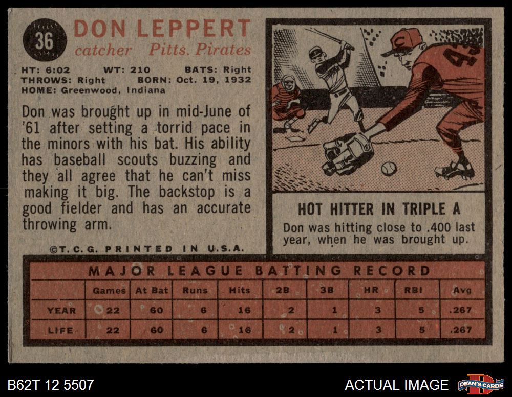 1962 Topps #36 Don Leppert 2.5 - GD+