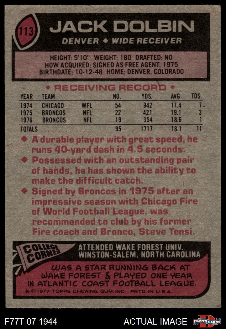 1977 Topps #113 Jack Dolbin 5 - EX