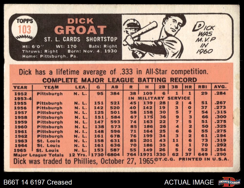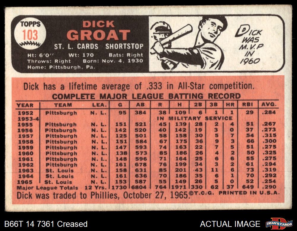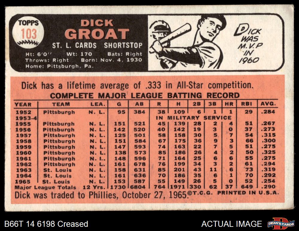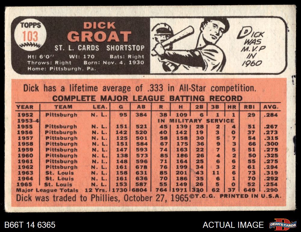 1966 Topps #103 TR Dick Groat 2 - GOOD