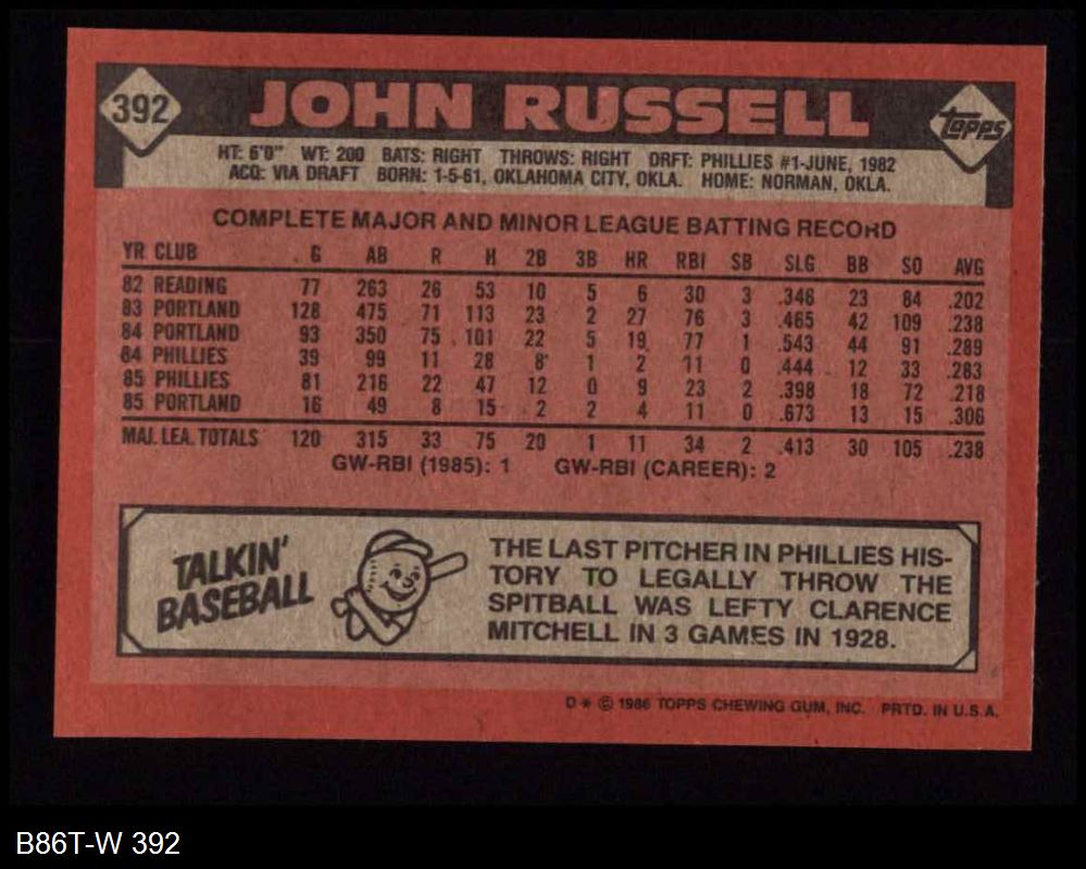 1986 Topps #392 John Russell