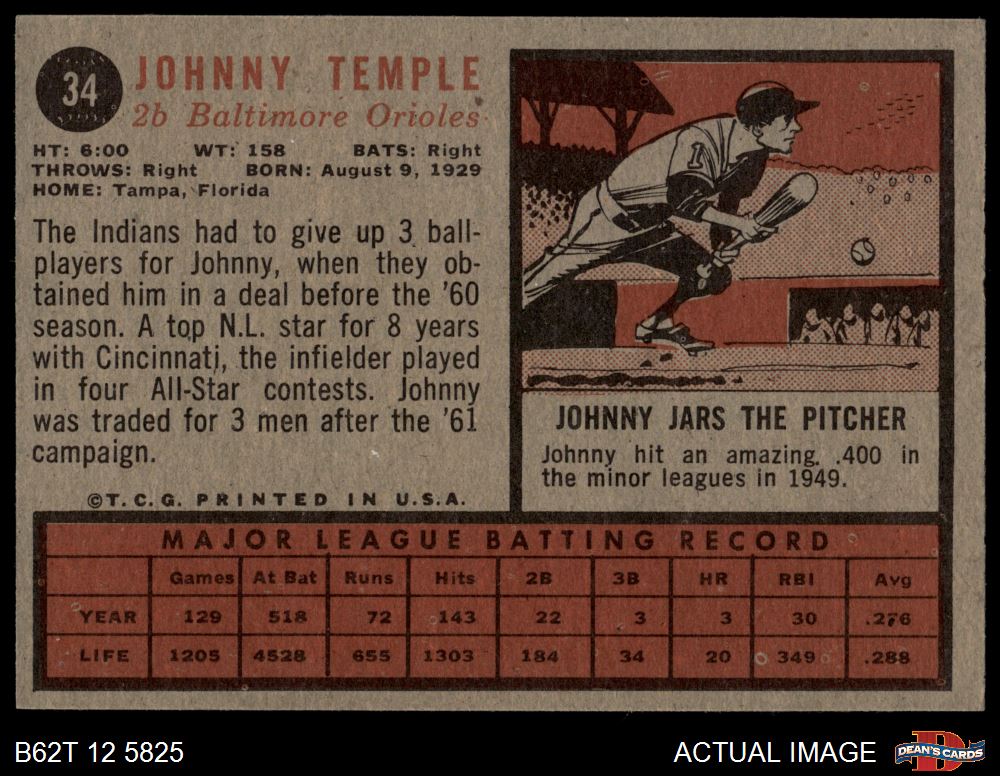 1962 Topps #34 Johnny Temple 5.5 - EX+