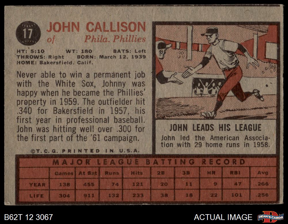 1962 Topps #17 Johnny Callison 1.5 - FAIR