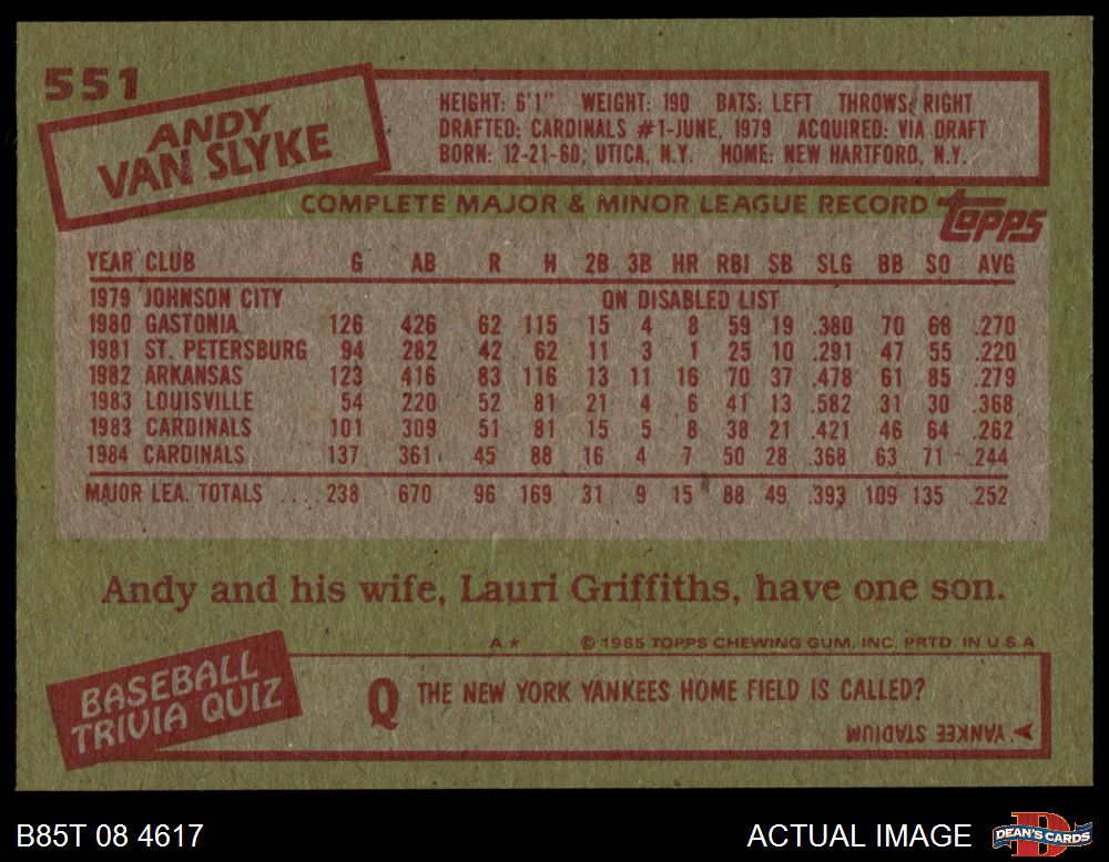 1985 Topps #551 Andy Van Slyke 7 - NM