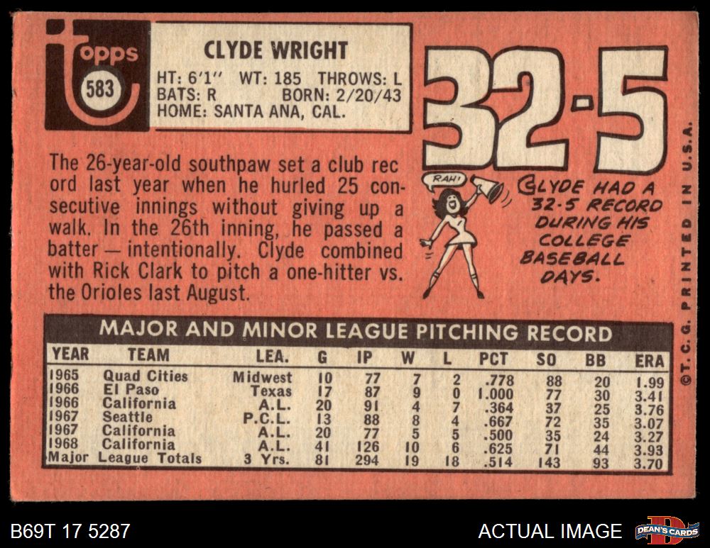 1969 Topps #583 Clyde Wright Front Thumbnail