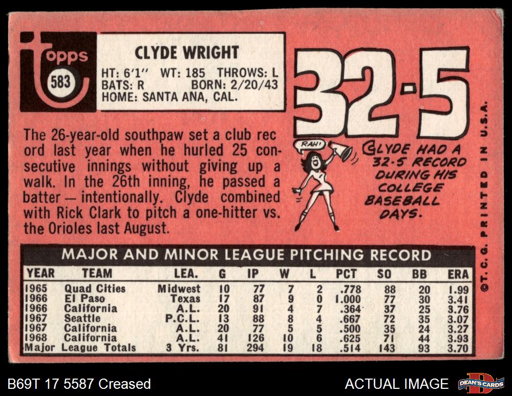 1969 Topps #583 Clyde Wright 1.5 - FAIR