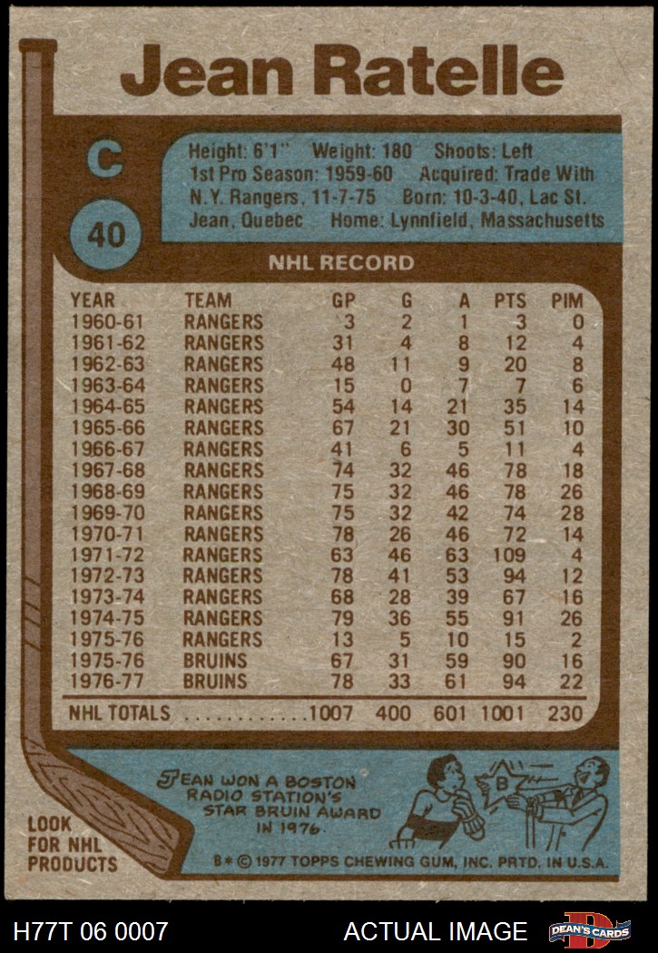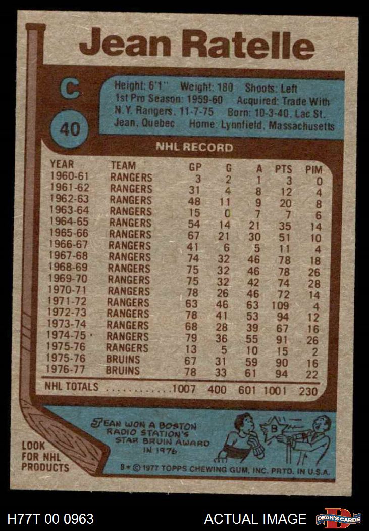 1977 Topps #40 Jean Ratelle