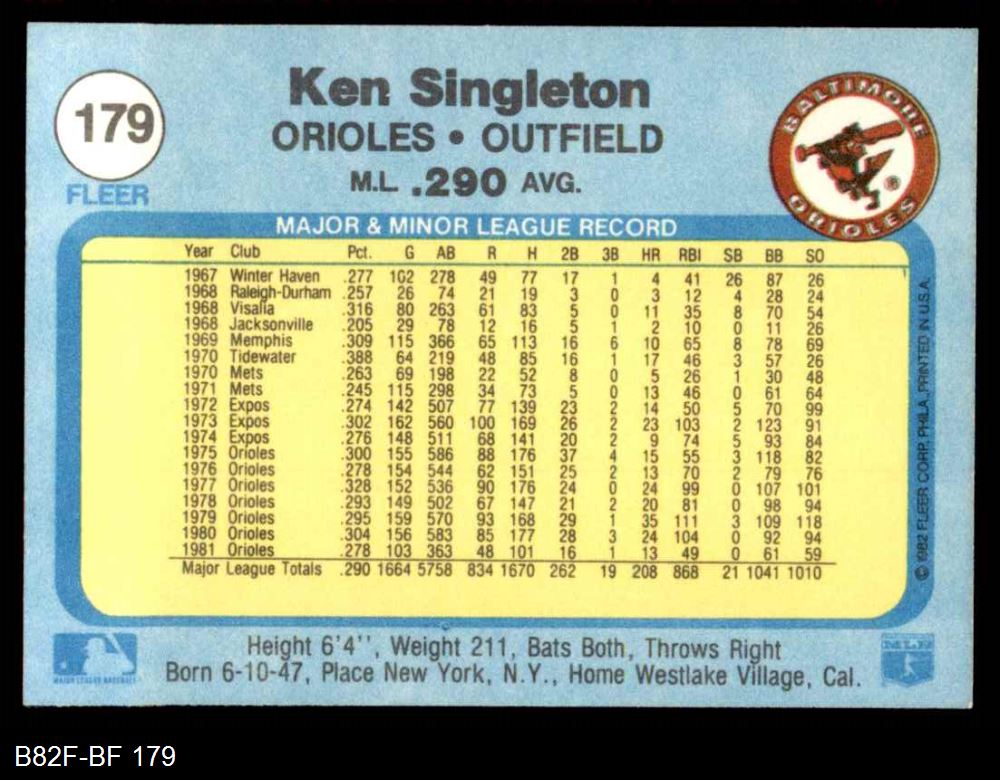 1982 Fleer #179 Ken Singleton 8 - NM/MT