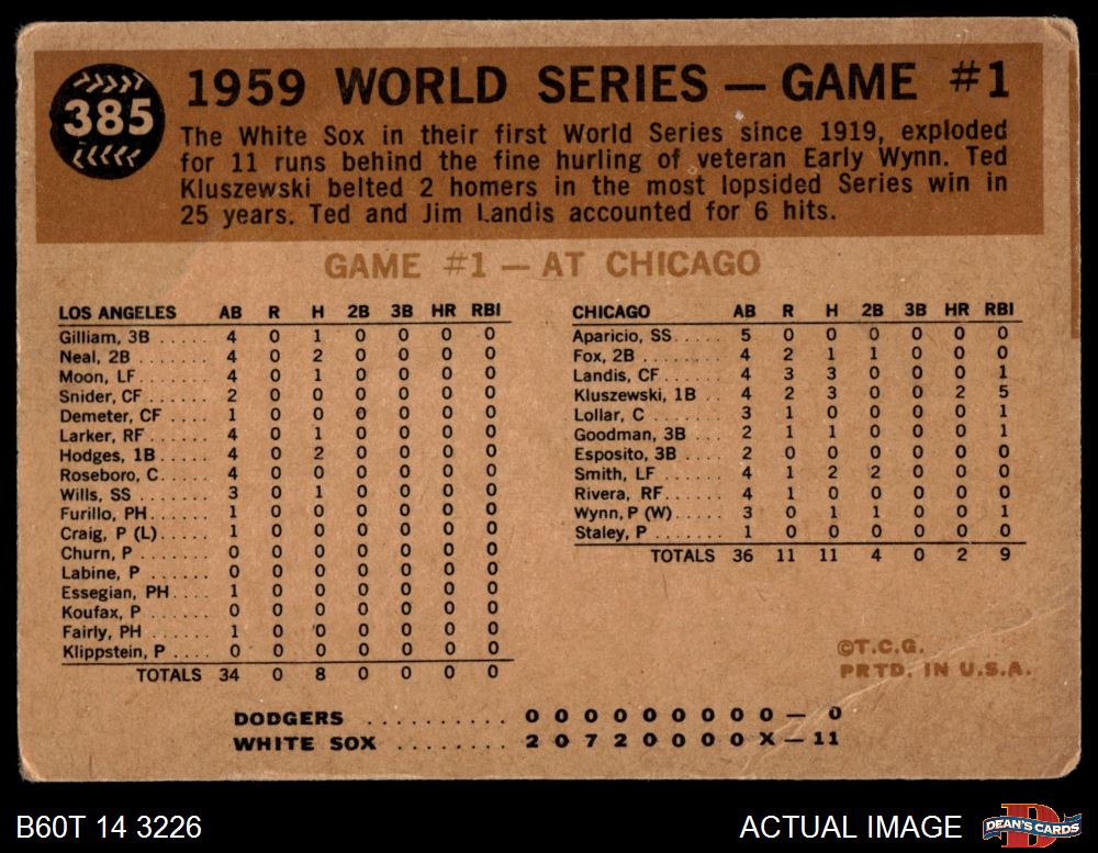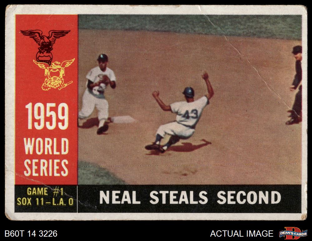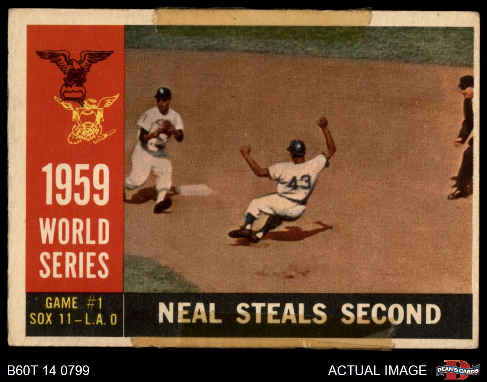 1960 Topps #385 - Charlie Neal 1959 World Series - Game #1 - Neal Steals Second 1 - POOR