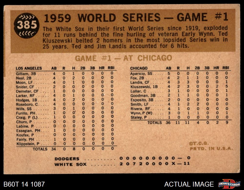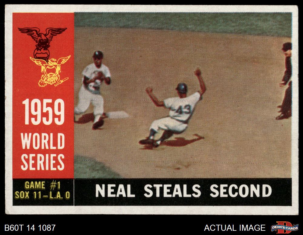 1960 Topps #385 - Charlie Neal 1959 World Series - Game #1 - Neal Steals Second 3.5 - VG+