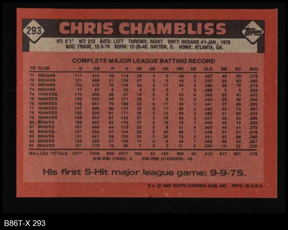 1986 Topps #293 Chris Chambliss