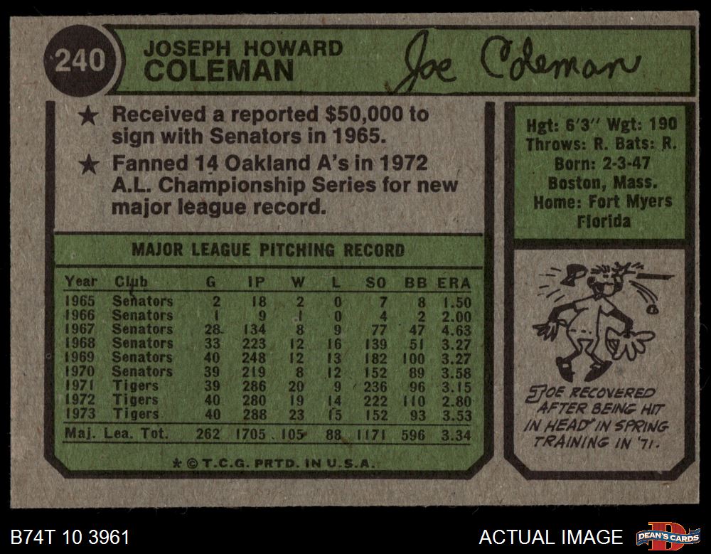 1974 Topps #240 Joe Coleman 4 - VG/EX