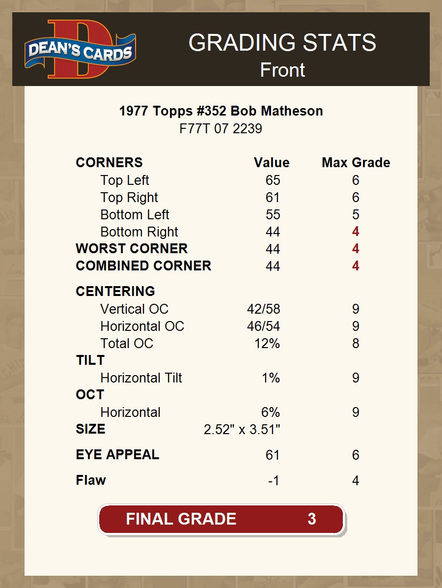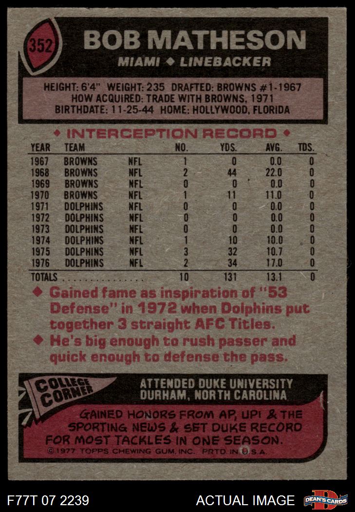 1977 Topps #352 Bob Matheson 3 - VG