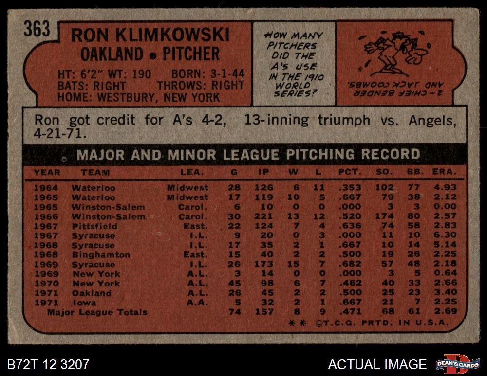 1972 Topps #363 Ron Klimkowski 2 - GOOD