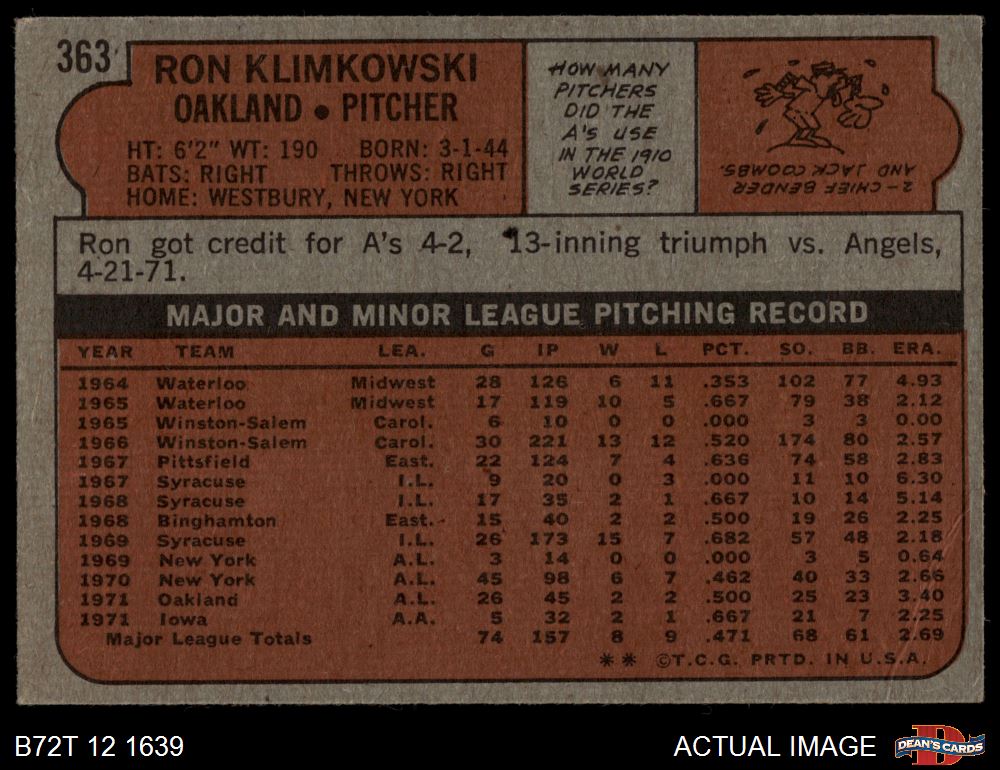 1972 Topps #363 Ron Klimkowski 4 - VG/EX