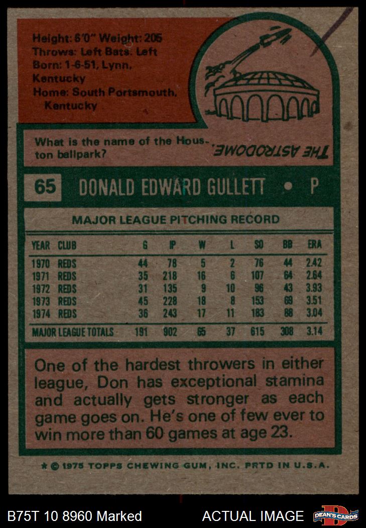 1975 Topps #65 Don Gullett 1.5 - FAIR