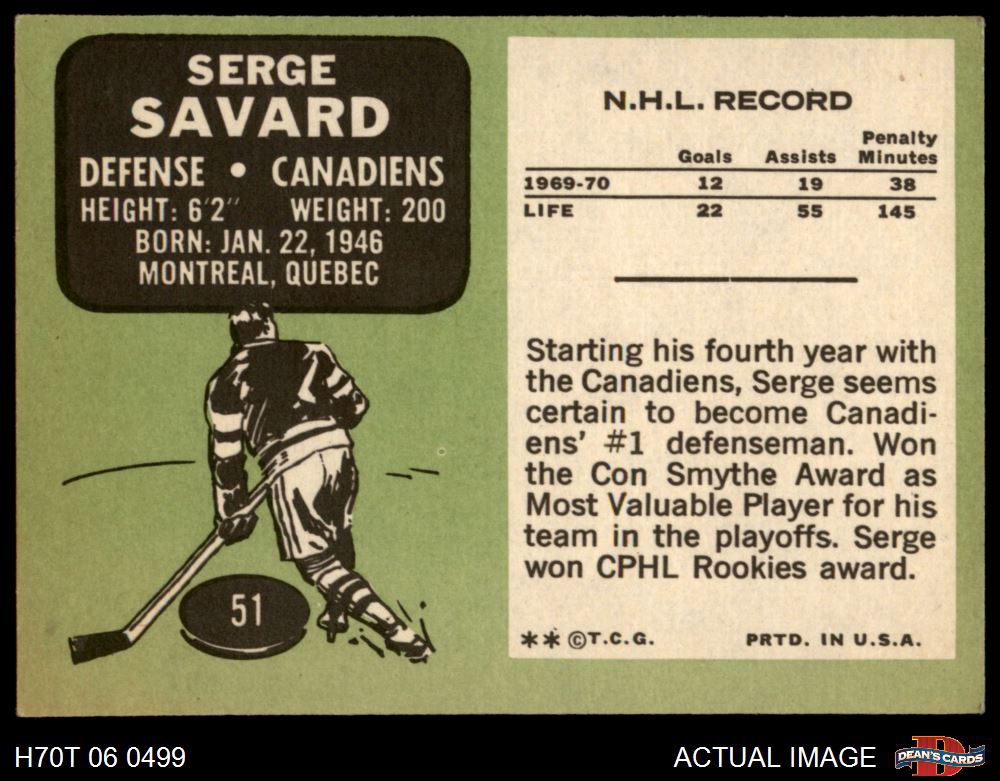 1970 Topps #51 Serge Savard 4 - VG/EX