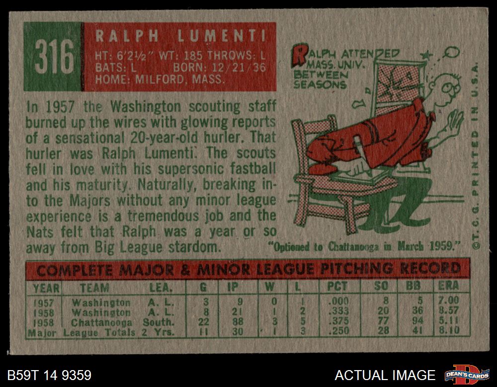1959 Topps #316 OPT Ralph Lumenti 6 - EX/MT