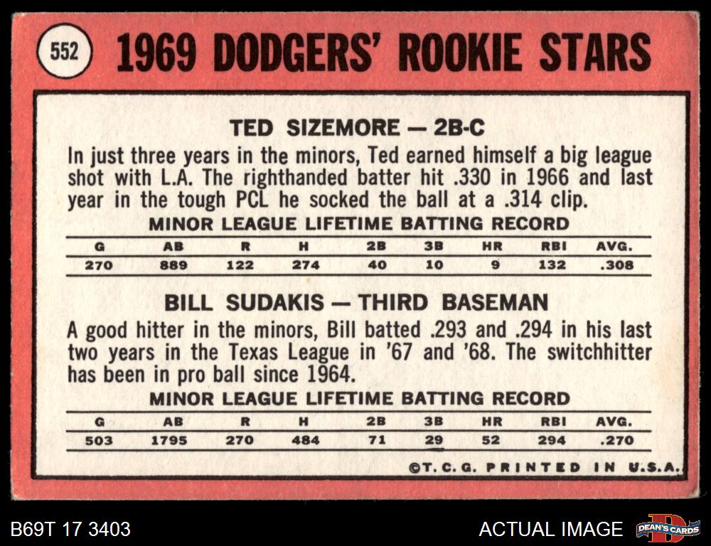 1969 Topps #552 - Ted Sizemore / Bill Sudakis Dodger's Rookies 3.5 - VG+