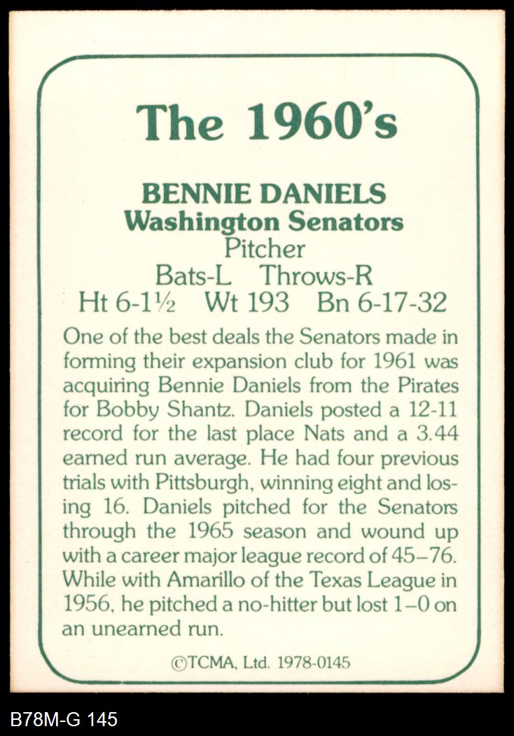 1978 TCMA The 1960's #145 Bennie Daniels